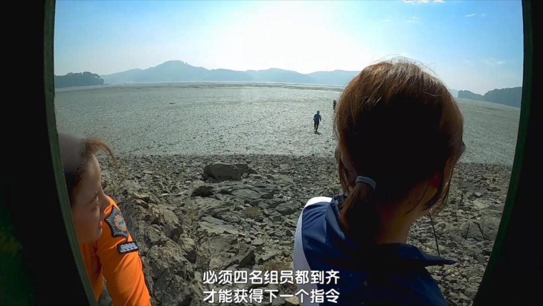 每个小组所有成员都必须穿过大片的泥滩跑到对岸,取回小组的旗帜和旗杆,然后带着组旗和旗杆原路返回,来到岛中的竞技场集合。