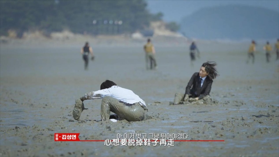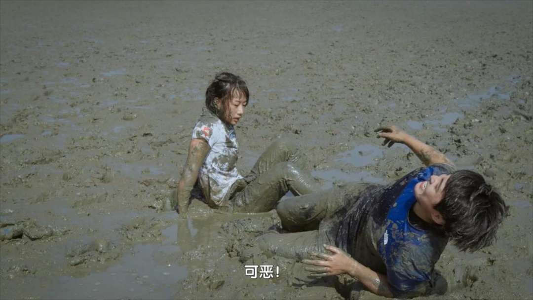 出发前,姐姐们满面潇洒、衣装整洁,可来到了泥滩,这一切瞬间烟消云散,只能拼命往前冲。