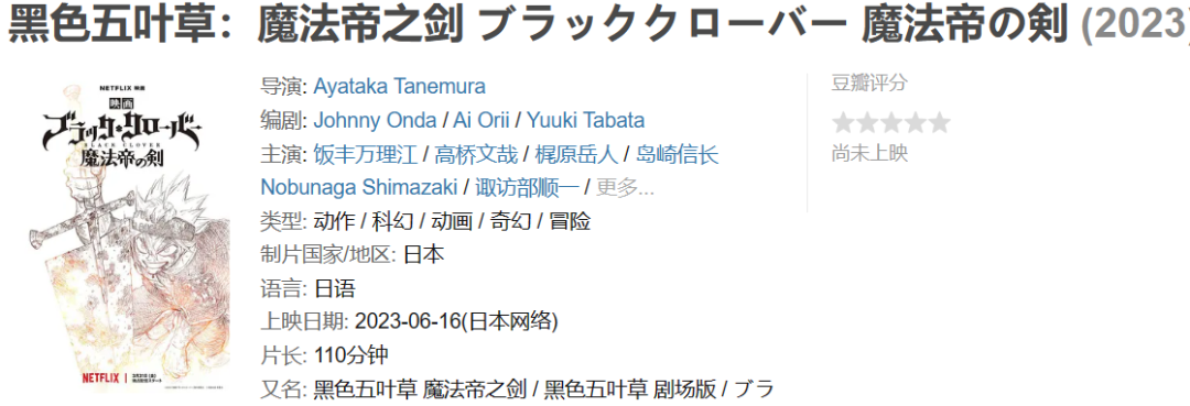 这部《黑色五叶草:魔法帝之剑》是该漫画的第一部电影作品,讲述的是漫画中尚未描绘的原创故事,由原著漫画作者田畠裕基担任监制。