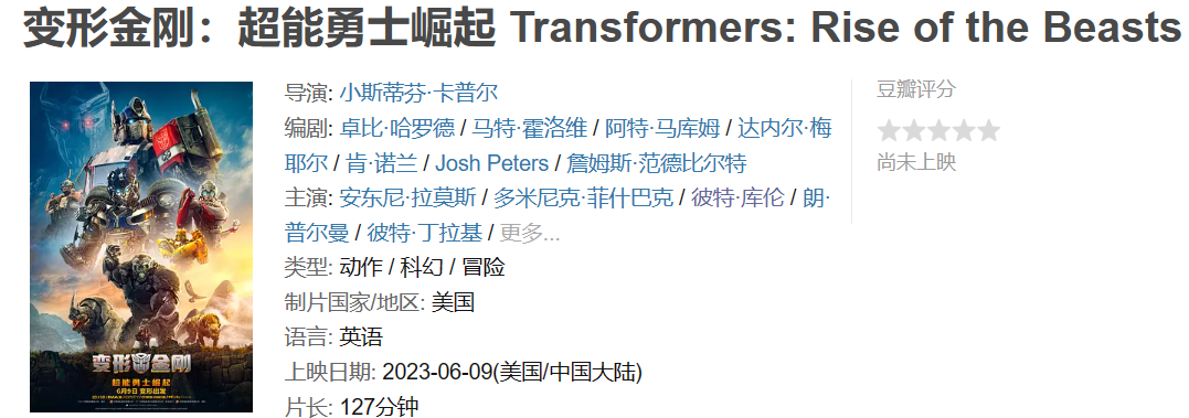 别的也没啥好说的,对变形金刚有情怀的人很难不继续期待,希望这回给点力!