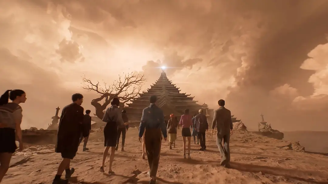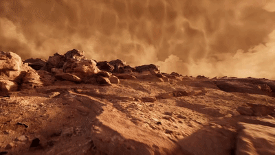 随后,龙尸颤抖,众人被吸进青铜棺椁,顺着“星际黑洞”来到一个陌生之地,黄沙滚滚,红褐色大地一望无垠,天空中挂着两个“月亮”。