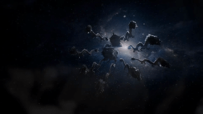动画的故事同小说一样,一出场就是上面提到的场景,九龙拉棺横悬太空。