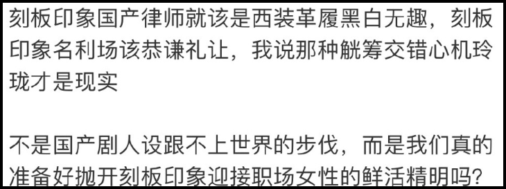 “律师们西装革履属于刻板印象,在名利场觥筹交错才是现实。”