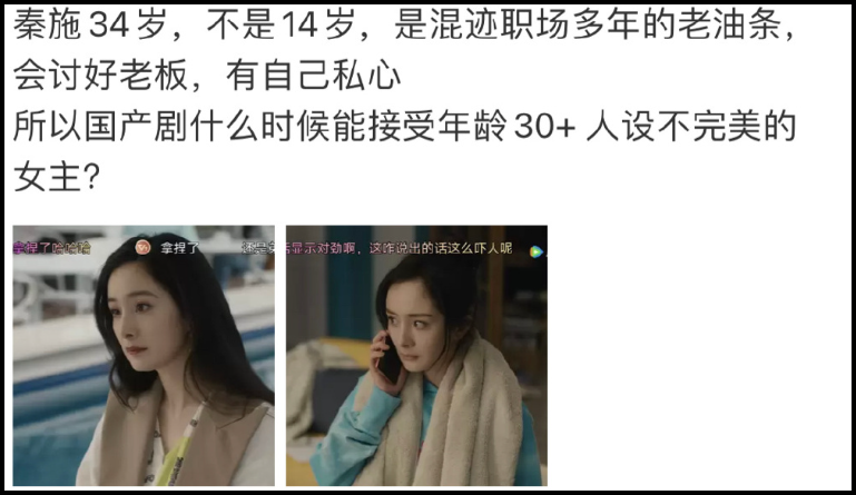 第三,在这个热搜里面还有一个点,说的是请接受年龄30+人设不完美的女主。