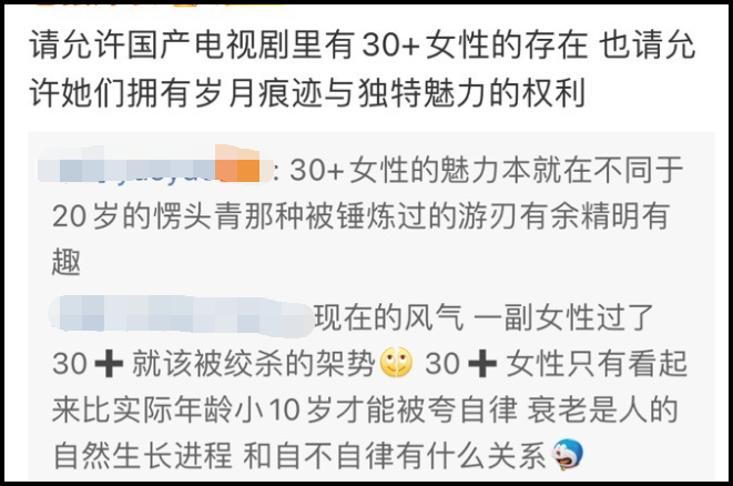 热搜里表示这是在进行对女性的年龄歧视,看不到中女在岁月里留下的痕迹和独特的魅力。