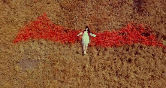 一位女子被人发现杀死在田野上,两只胳膊被锯下,鲜血被涂抹成翅膀的样子。