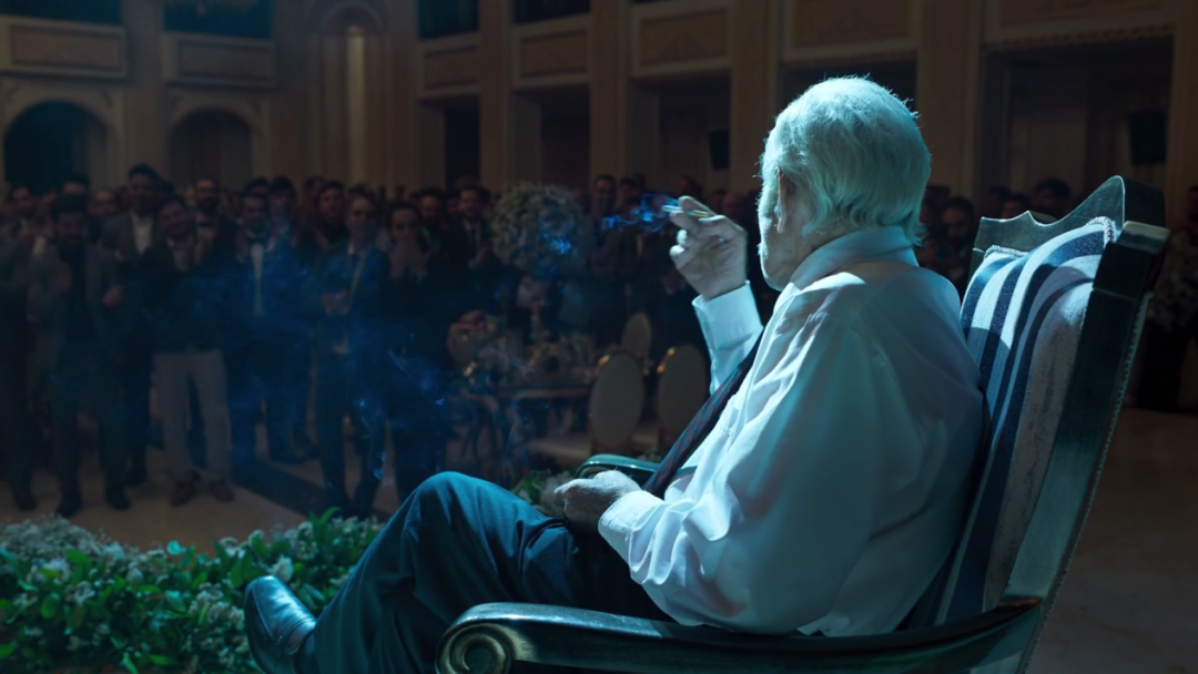 他脱掉外套抽着烟,挥着手向众人示意,翘着二郎腿,嗨得不得了,仿佛他的人生已经到达了巅峰。