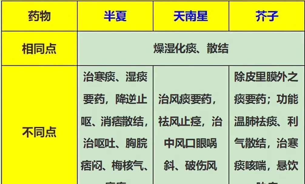 相似知多点:区别半夏、天南星、芥子功效,一表读懂