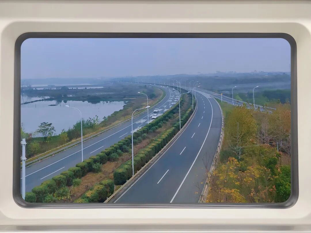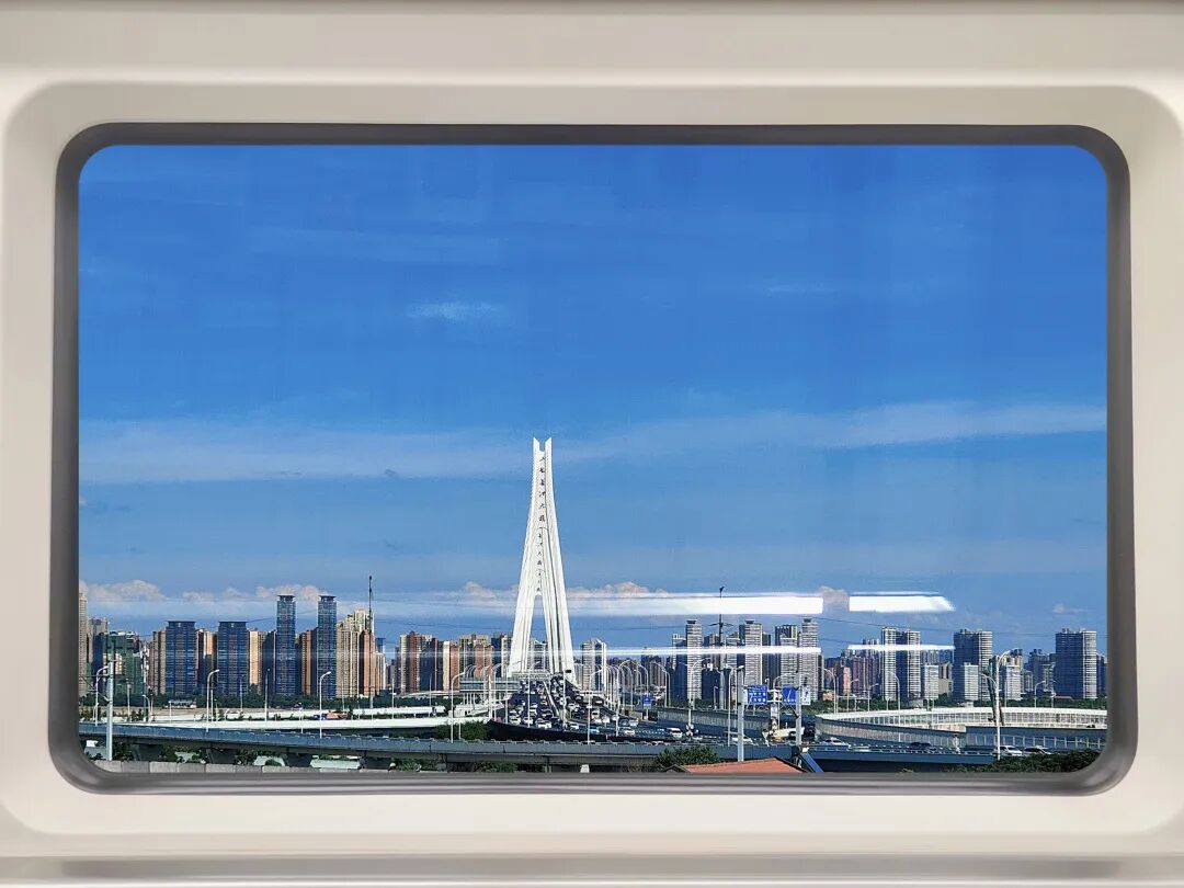 欣赏着车窗中快速闪动的倒影