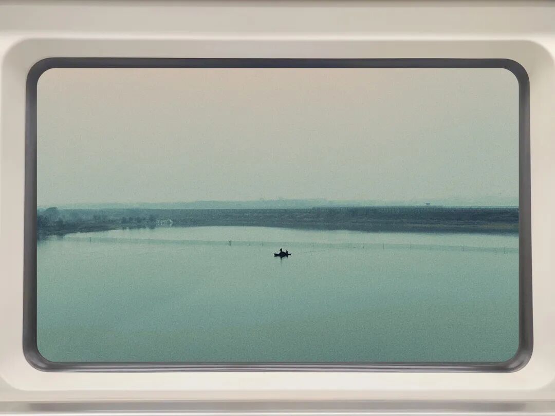 轻舟横水面,两相遥望