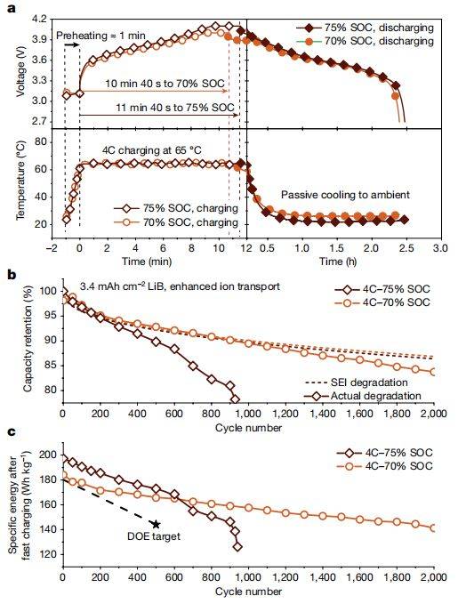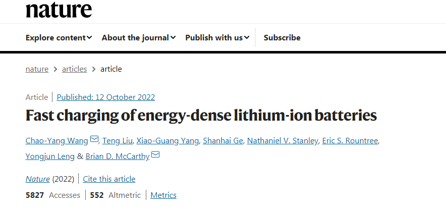 这项技术突破以“Fast charging of energy-dense lithium-ion batteries”为题发表在国际顶级期刊《Nature》上。