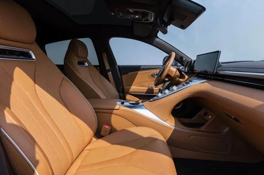 车顶两端式的全景天幕,采用了双层隔热技术的低辐射镀膜节能玻璃+PVB隔热膜,按照官方的数据,紫外线隔绝率超99.9%,红外线阻隔率95%以上。