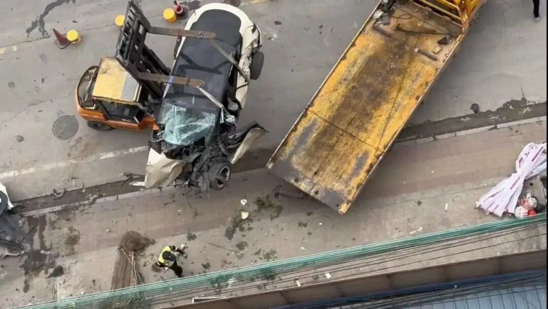 之后车辆在左前胎爆胎的情况下继续行驶了1.4公里,撞到了三轮摩托车和骑自行车的高中女生。最终在撞到路边的电线杆和货车后停了下来,不幸的是摩托车驾驶员和高中生当场死亡。