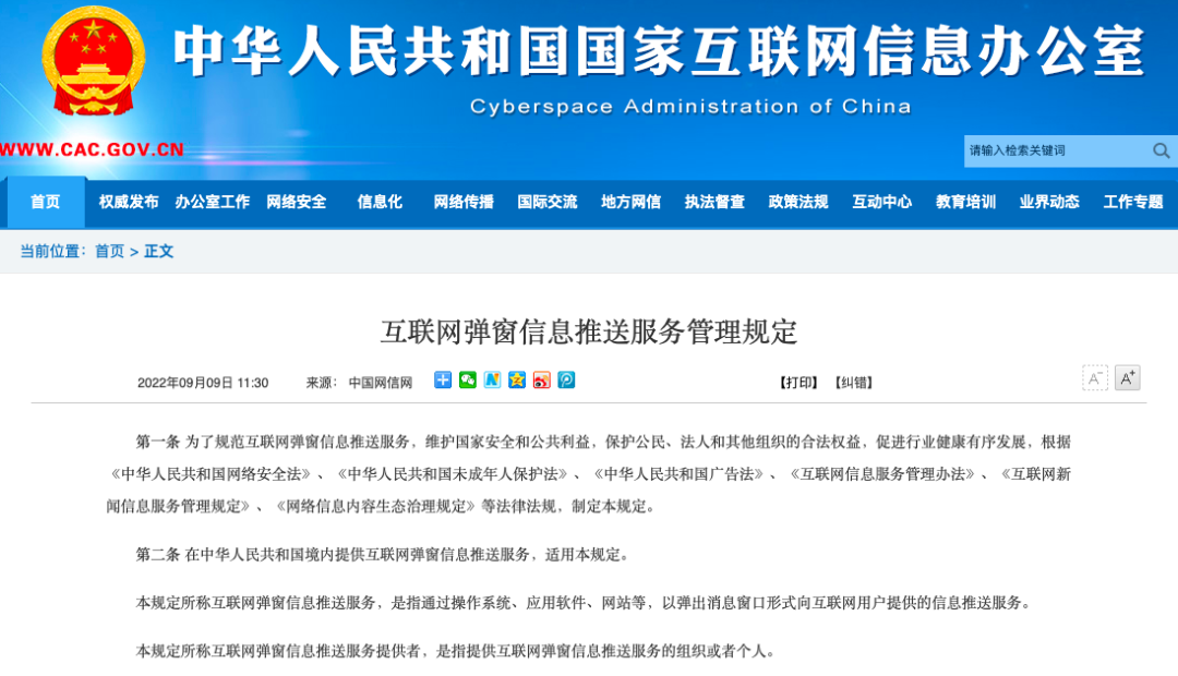 好消息是,9月30日,国家网信办、工信部和国家市场监管总局联合发布了《互联网弹窗信息推送服务管理规定》。