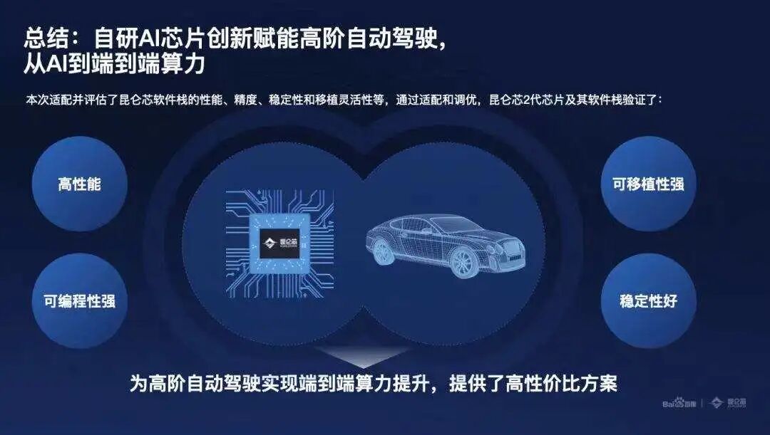 昆仑芯片公司 CEO 欧阳剑透露,昆仑芯片2代已完成无人驾驶场景端到端性能适配。
