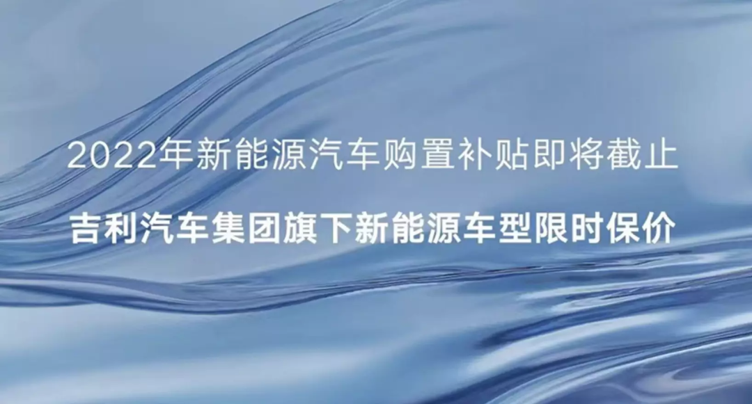 此外,吉利也推出了保价政策,在2022年12月31日24:00前完成定金支付的定单,可享受2022年国家新能源补贴,涉及吉利、领克、几何品牌。