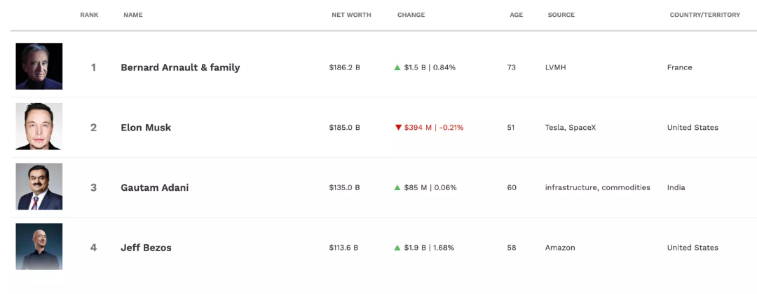 把马斯克拉下马的是LV老板,路易威登董事长伯纳德·阿诺特(Bernard Arnault),这个家族以1854亿美元的净资产位居福布斯全球富豪榜首位。