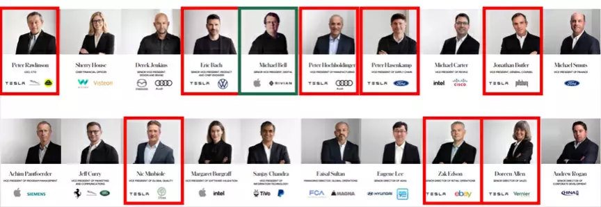 随后Lucid聚集了一大批前特斯拉核心员工,包括前生产副总裁Peter Hochholdinge、前硬件工程副总裁Eric Bach、供应链管理副总裁Peter Hasenkamp 、销售总监Doreen Allen等等。