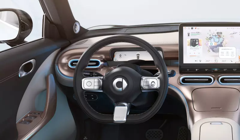 smart精灵一号上所搭载的smart OS 全场景数字生态车机系统,就是来自亿咖通。亿咖通基于戴姆勒的设计,结合smart的整车工程,为精灵一号打造了完整的智能座舱产品。