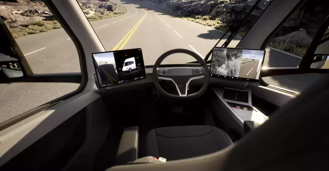 另外,和特斯拉其他车型一样,Semi也取消了传统汽车仪表中控设计,取而代之的是位于方向盘两侧的超大屏幕。