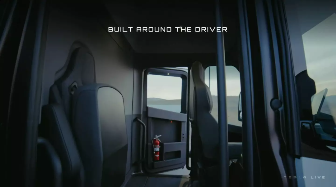和传统重卡驾驶员座位在驾驶室的左侧或右侧不同,Semi驾驶员的座位位于驾驶室的中央,整车取消了副驾驶的位置。