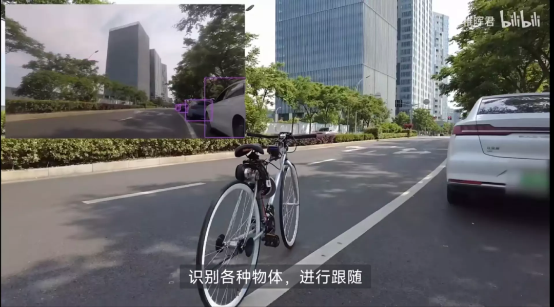 于是经过这一系列的操作,再加上深度相机、激光雷达等传感器,这辆自行车能够快速检测出周围是否有物体,从而实现避障和跟随。