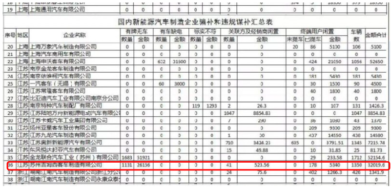 2016年9月,一张《国内新能源汽车制造企业骗补和违规谋补汇总表》在业内疯传,这年财政部等四部委共对93家车企展开调查,涉嫌骗补的车企竟有72家,骗补车辆共计76374辆,各种补贴加在一起金额达到92.7亿。