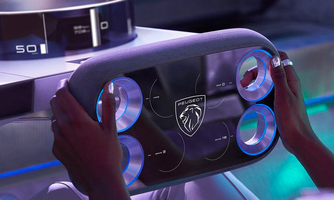 在智能座舱方面,标致Inception所搭载的是全新一代i-Cockpit座舱、线控转向技术、7.25平方米的玻璃车顶,在这里应用的是NASA宇航员头盔遮光罩技术,“四饼”矩形方向盘拿在手里更像一个游戏手柄。