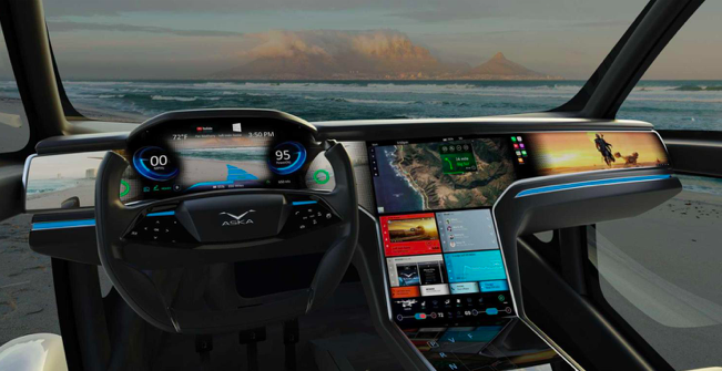 隐藏在仪表板上的Shy Tech传感器,驾驶者可以自行决定在先进平视显示系统上显示内容。用户可以通过混合现实交互界面在五个层级中进行选择,包含真实环境,驾驶信息、社交沟通、增强现实投影,以及虚拟世界。