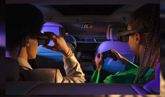 奥迪在 CES车展上带来的是车载VR体验“Experience rides”,乘客可以坐在奥迪 e-tron 和 e-tron Sportback 的后排,沉浸式体验车乘VR。