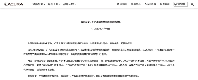 去年4月,广汽Acura官方就发布公告,确定自2023年起本,将正式退出中国市场,广汽本田将不再生产和销售广汽 Acura 品牌的现有产品。