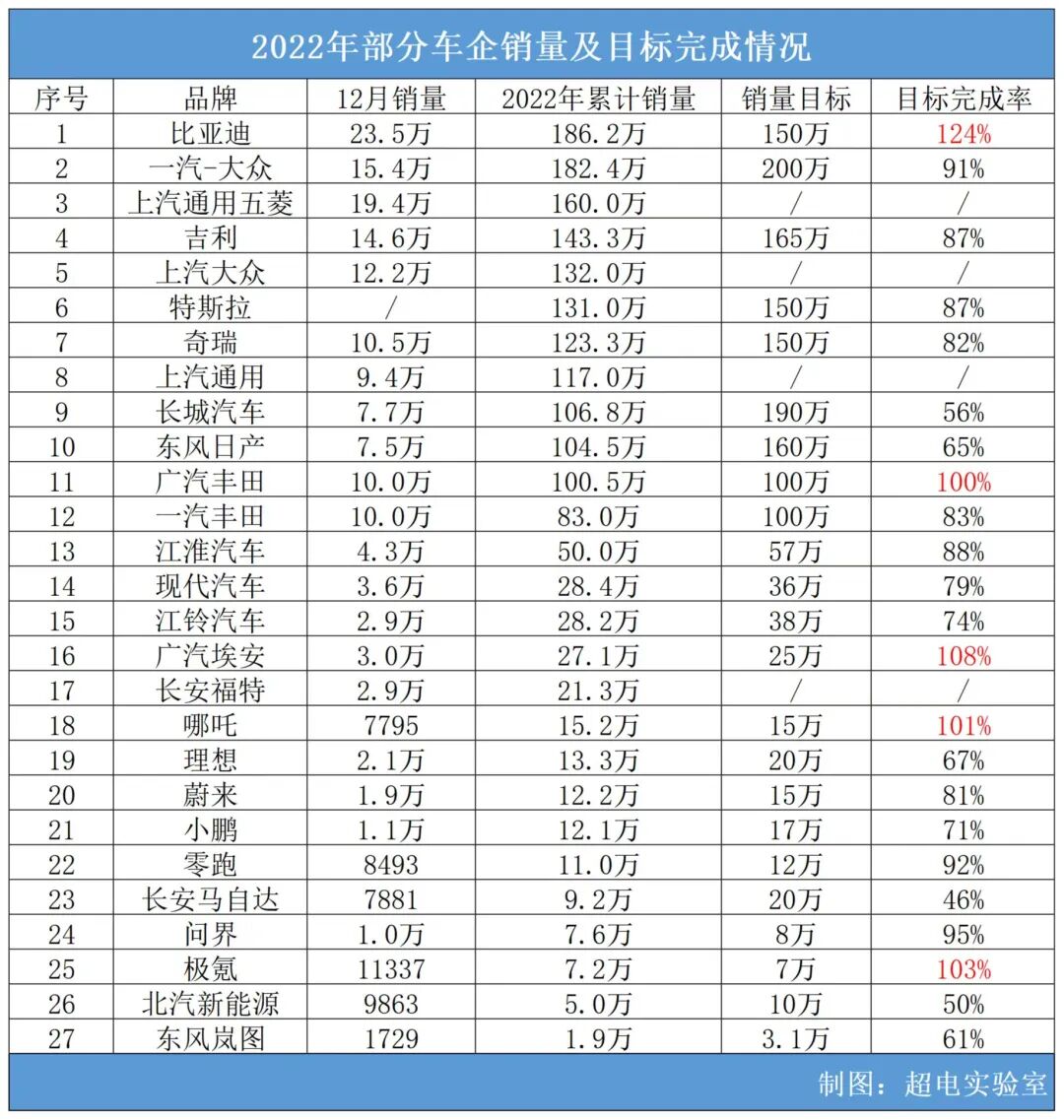 在传统车企阵营方面,吉利、上汽、奇瑞等,都没有完成目标。所以在2022年,完不成是常态,不丢人。
