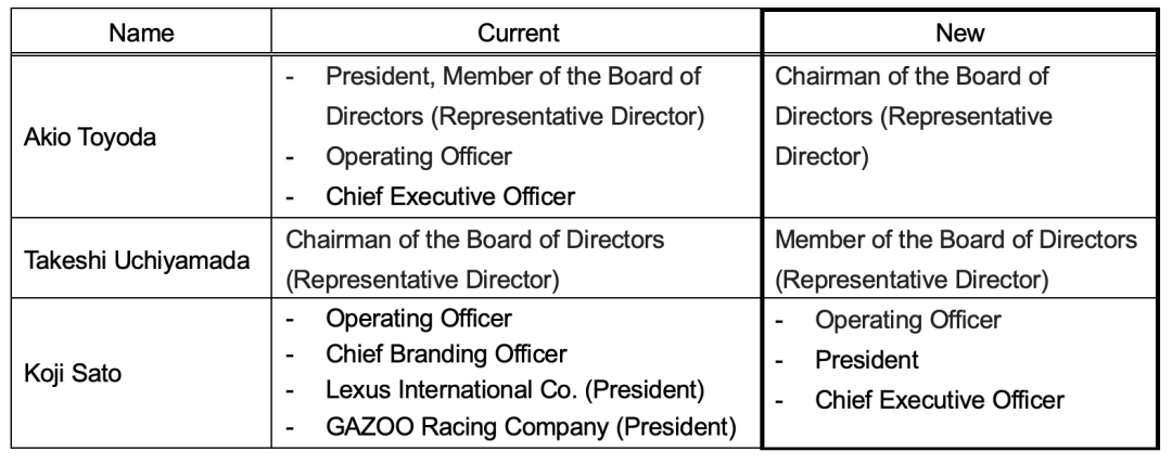丰田章男在电动汽车化的压力下,也选择了将接力棒交给下一位继任者。卸任社长后,将出任丰田汽车公司会长,虽然不再是社长,但严格意义上来说,丰田章男还是丰田的老大。