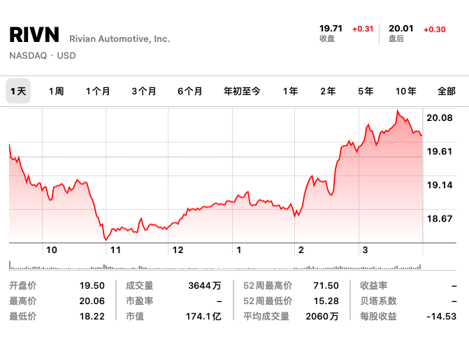 裁员能起到多大的效果,目前还不得而知。资本市场对裁员并没有太大反应,截止2月1日收盘,Rivian每股报价19.71美元,还微涨1.6%,市值为174.1亿美元。