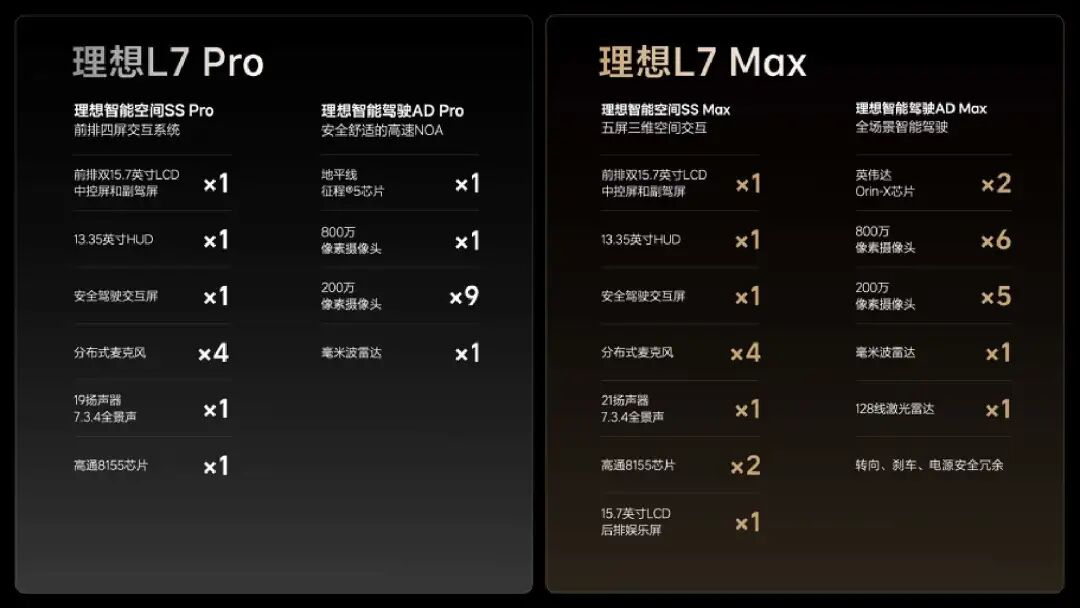 理想L7 AD MAX的智能驾驶算力平台,使用了两颗英伟达Orin-X芯片作为处理器,总算力508Tops。搭配激光雷达以及全套自动驾驶安全冗余系统,将实现全场景的智能驾驶功能。