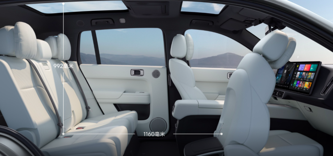 与此同时副驾背后可以延伸出电动腿托,可提供近乎半躺的乘坐状态。并且前后座椅均标配加热通风和腰部按摩功能,二排右侧座椅靠背支持25度—40度的超大角度电动调节,加上超过52cm超长坐垫支撑,舒适感应该会不错。