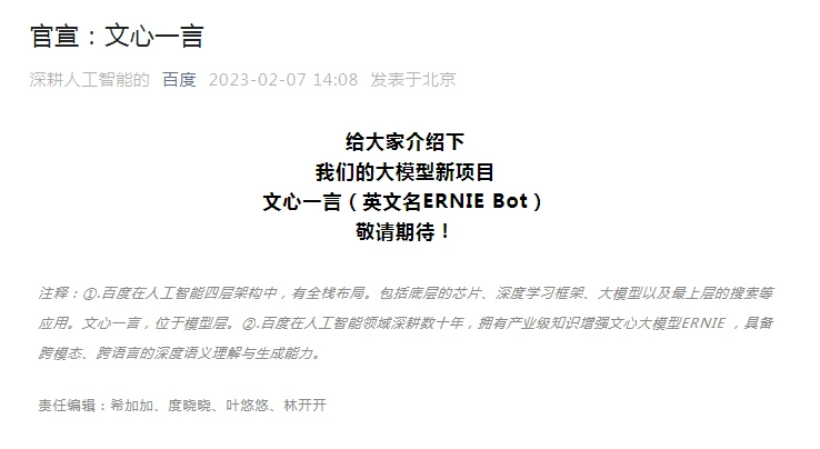 其渊源可以追溯至十年前,2013年,百度设立深度学习研究院,投资超过1000亿元,直到2018年,百度将深度学习平台“飞桨”升级为操作系统,文心一言的背后支持系统正是飞桨操作系统。