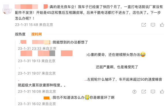 北京之外,浙江和上海的车主也纷纷表示遇到了相同情况,厂家没有配件,无法维修,只能干等。