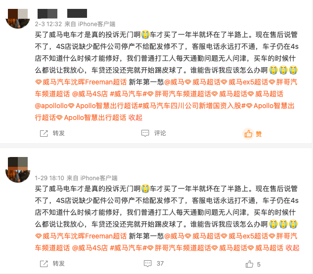 威马危机的另一端,是曾经信任威马的数万名车主。