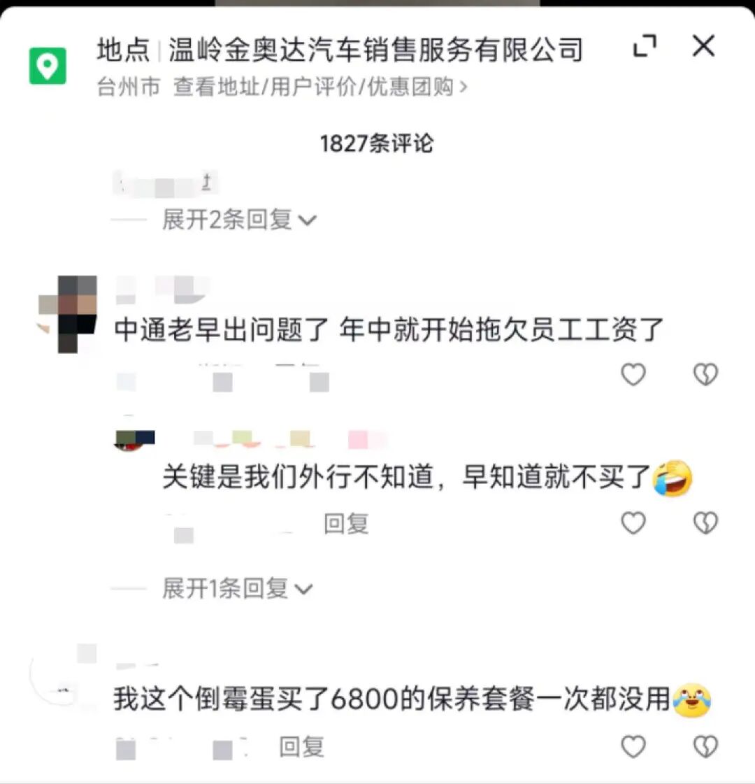 此外,不少车主也吐槽,“在店里保养充2000 元,估计是泡汤了”、“路桥中通捷豹路虎店,还二次保养没了”、“还没来得及上牌”…