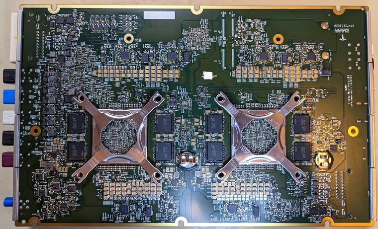 来到硬件内部,根据高清爆料图可以看到,HW4.0 主板整体仍然采用了对称设计,配置均为双备份,算力翻倍的同时,其中一块也可以作为冗余算力。