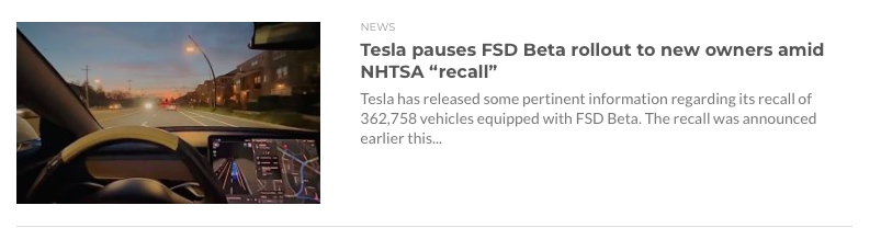 在这之前,美国国家公路安全交通管理局(NHTSA)表示,特斯拉申请在美国召回“某些配备全自动驾驶Beta软件(FSD Beta)或待安装该软件的车辆”,召回车辆总数达362758辆,包括2016年至2023年生产的部分Model 3/X/Y/S车型。