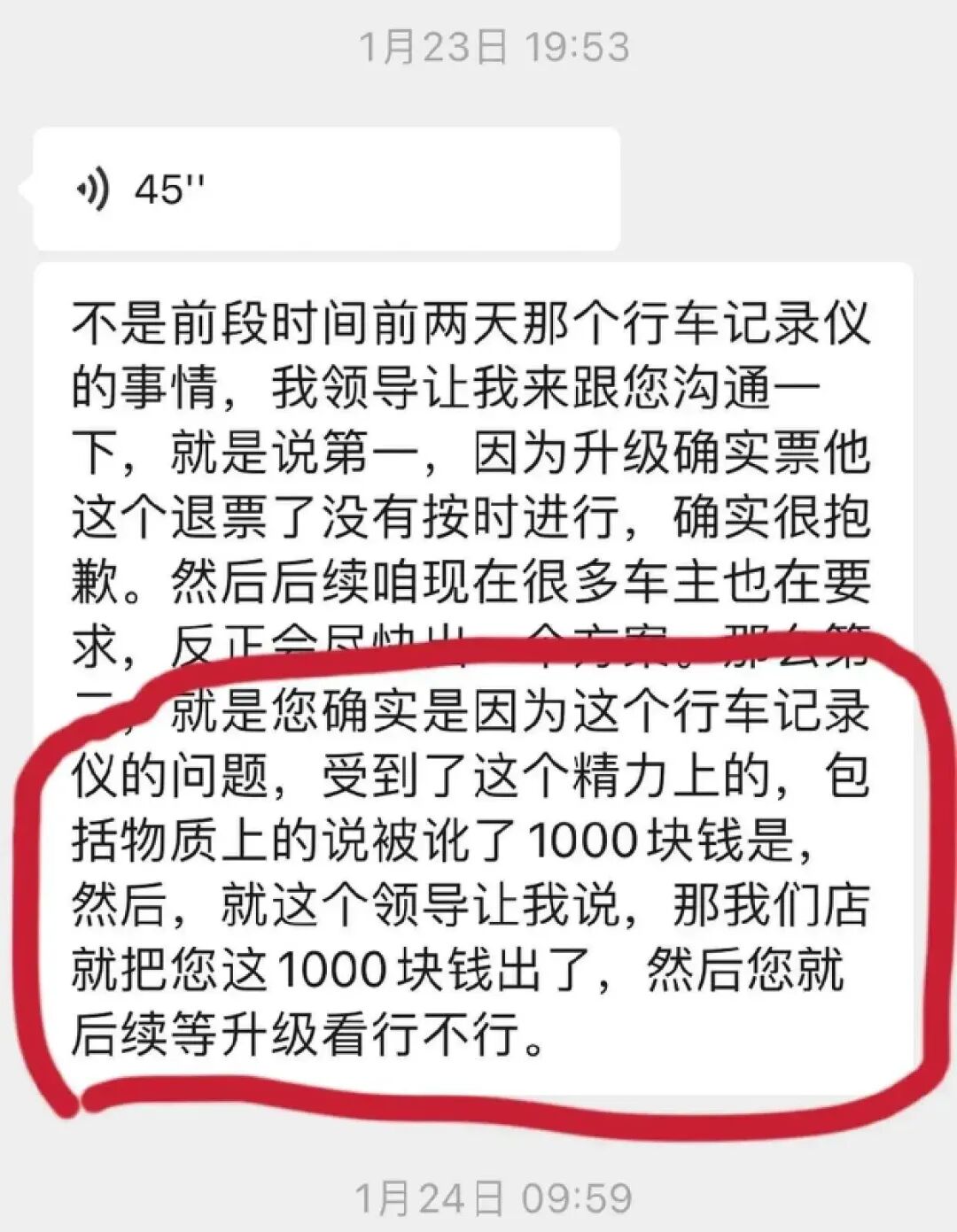 后来又说到今年春节前,直到现在才逐步邀约客户到店升级,不过这种升级并不是全面的,比如行车记录仪这项功能,得到今年年底才会给升级。