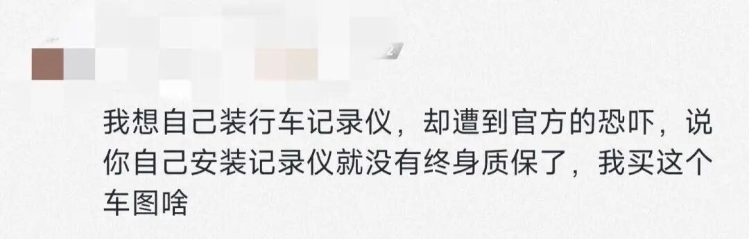 没办法保证就算了,我想着等官方给我安装行车记录仪会等到猴年马月,准备自己安装一个,却遭到了警告,说如果自己安装的话,就可能会取消车辆终身质保。