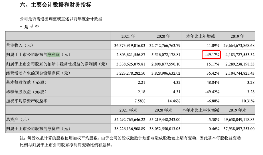 云南白药公布的2021年财报显示,2021年云南白药的营收和净利润分别为363.74亿元和28.04亿元。