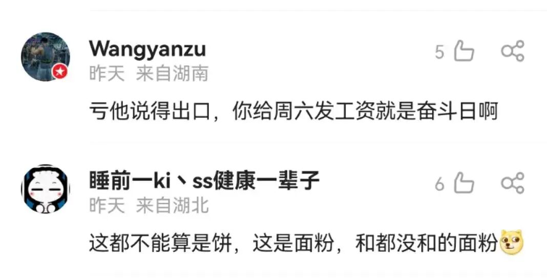 @Wangyanzu:亏他说得出口,你给周六发工资就是奋斗日啊。