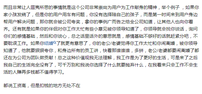 当你遇到一些事情,比如碰到你的家人觉得你工作太忙要求离婚这种大事,你还坚持去公司,被老板知道后,他甚至会狠狠的夸你,和身边所有员工讲,快看人家多拼,都要闹离婚了都还在为公司为团队做贡献。