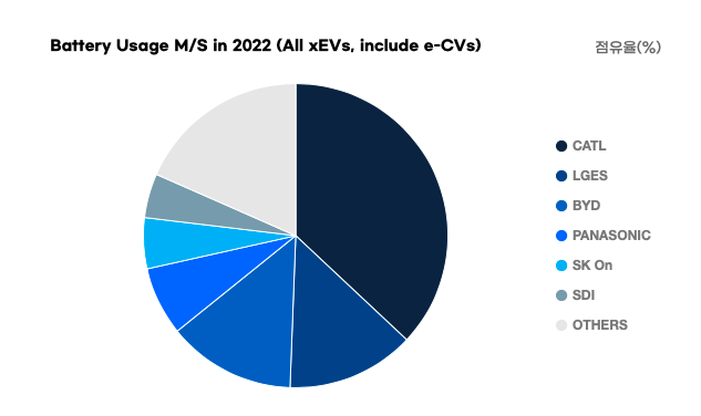 其中,宁德时代2022年装机量为191.6GWh,全球市占率为37%,同比上涨4%,连续六年稳坐全球冠军。
