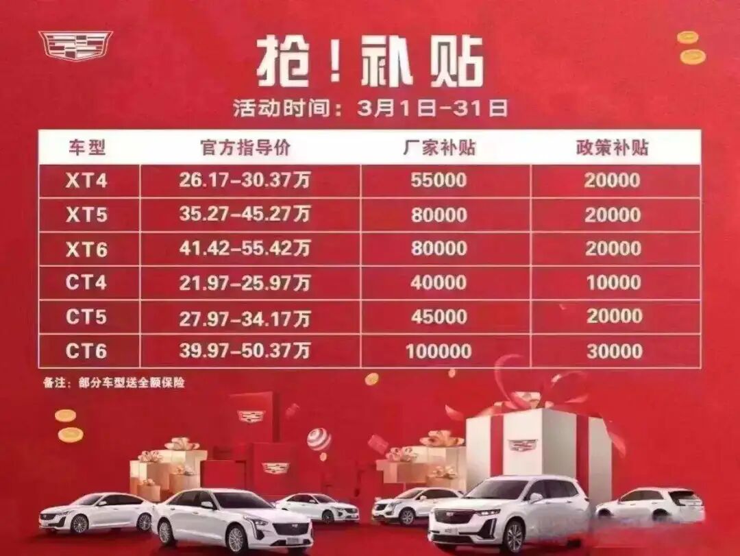 凯迪拉克同样是补贴重点,旗下全系车型都有相关补贴,最高达13万元,CT4车型,裸车价仅为16.97万。