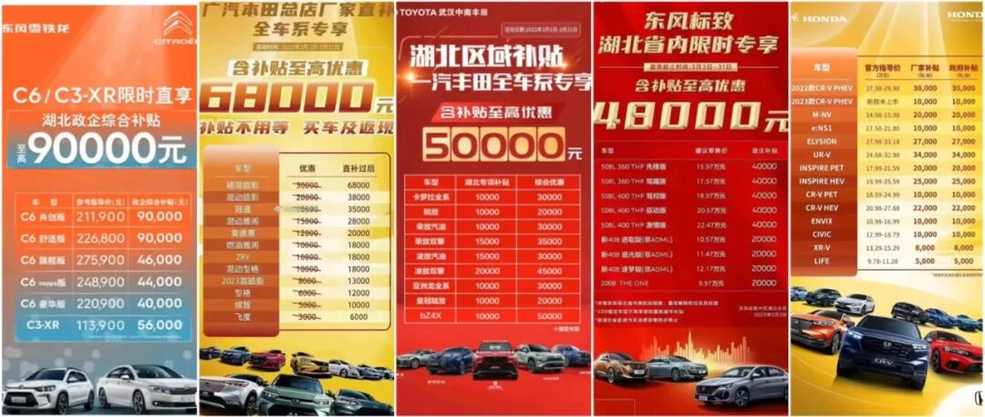 这个优惠方式主要是湖北省地方政府和车企联合出手,其他车型降幅也很大。